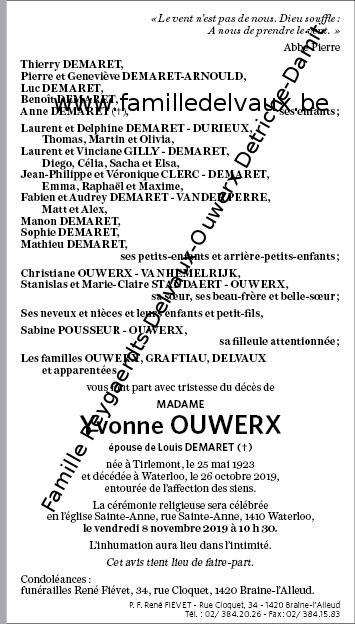 Décès d’un frère | Paul OUWERX 13 mai 1985 (Âge 61) |